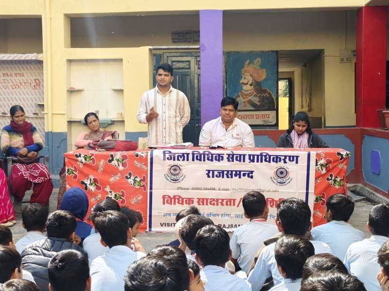 आमेट. राजस्थान राज्य विधिक सेवा प्राधिकरण जयपुर एवं विधिक सेवा प्राधिकरण जिला सचिव न्यायाधीश भारत भूषण पाठक व आमेट तालुका विधिक सेवा समिति अध्यक्ष मजिस्ट्रेट विजय टांक,सीबीईओ नारायण सिंह राव के निर्देशानुसार पीएम श्री राजकीय उच्च माध्यमिक विद्यालय आमेट मित्र मंडल परिसर में प्रधानाचार्य प्रकाश चन्द्र प्रजापत की अध्यक्षता में विधिक जागरूकता शिविर का आयोजन किया। मुख्य अतिथि शिक्षक मुकेश वैष्णव थे।