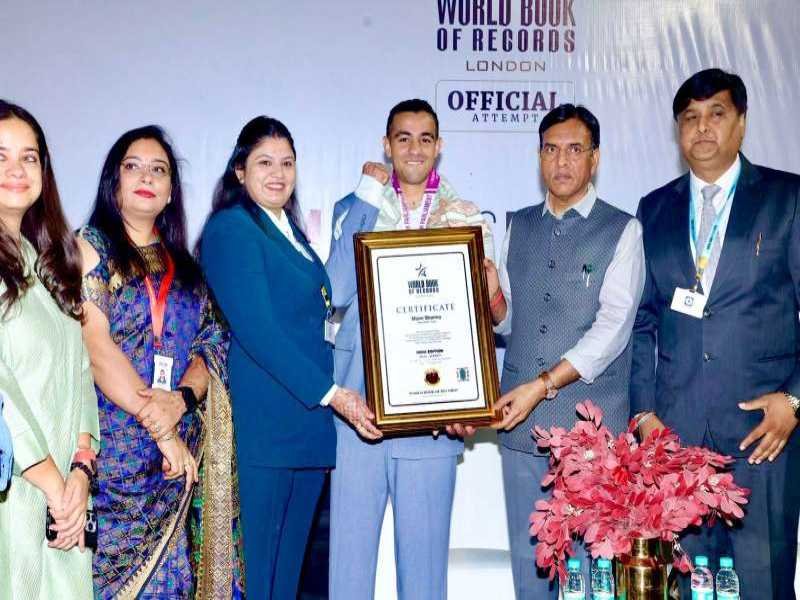 भारत सरकार के केंद्रीय मंत्री, युवा मामले एवं खेल तथा श्रम एवं रोजगार डॉ. मनसुख एल. मांडविया ने वर्ल्ड बुक ऑफ रिकॉर्ड्स की ओर से मन शर्मा को सम्मानित किया, सीईओ संतोष शुक्ला ने उन्हें बधाई दी।