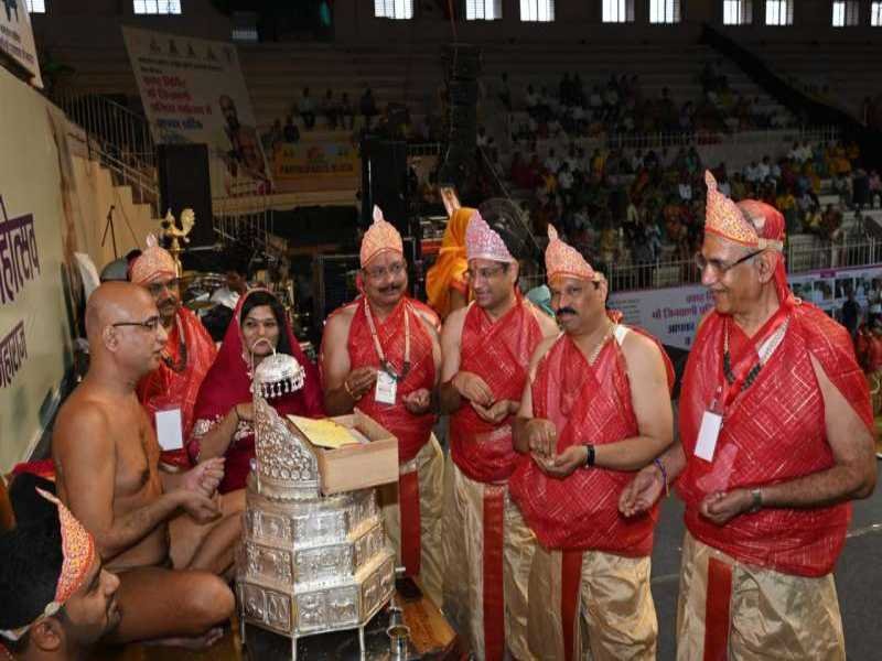इंदौर. हजारों वर्षों की परंपरा, संस्कारों की धरोहर और श्रद्धा का विराट स्वरूप... इंदौर ने रविवार को इसे साकार होते देखा... अंतर्मुखी मुनि पूज्य सागर जी महाराज के पावन सान्निध्य में अभय खेल प्रशाल में मां जिनवाणी की दिव्य एवं अद्वितीय प्रतिष्ठा संपन्न हुई... लगभग 1000 वर्षों में पहली बार आयोजित इस अनोखे आयोजन में श्रद्धा और संस्कारों का अद्भुत संगम देखने को मिला...इस अवसर पर 75 इंद्र-इंद्राणियों ने धर्म लाभ प्राप्त कर पुण्य संचय किया.