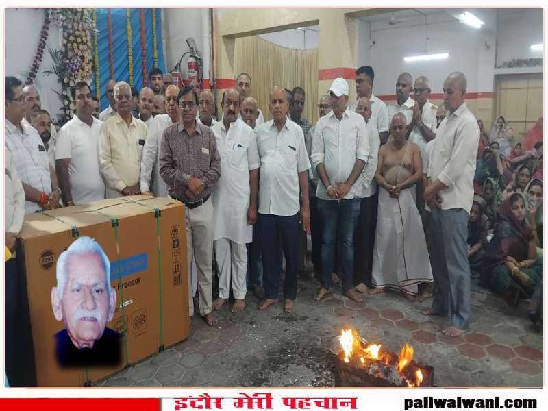 इंदौर. पालीवाल ब्राह्मण समाज 44 श्रेणी इंदौर के गौरवशाली भामाशाला एवं हमारे आदर्श ब्रह्मलीन श्री भोलीराम जी दवे (ग्राम. बामन टुंकड़ा) की पावन स्मृति में दिनांक 20 सितंबर 2025 को हमारे आराध्य देव श्री चारभुजा नाथ मंदिर में समाज के उपयोग हेतु दवे परिवार की ओर से सर्वश्री सुरेश जी दवे (पूर्व कार्यकारिणी सदस्य एवं पालीवाल गौरव के संपादक), कैलाश जी दवे, मोहनलाल जी दवे, पुखराज जी दवे (दवे परिवार राजवाडा) द्वारा समाज को भोजन प्रसादी हेतु रेफ्रिजरेटर भेंट समर्पित किया.