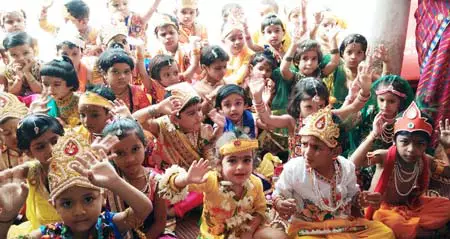 बुरहानपुर। जन्माष्टमी के पावन पर्व पर अर्वाचीन इंडिया स्कूल विशेष वृंदावन महोत्सव का आयोजन किया गया। नर्सरी, एल.के.जी एवं यू.के.जी में पढने वाले विद्यार्थियों को राधा ओर कृष्णा के वेशभूषा में बुलाया गया। प्राचार्य उज्जवल दत्ता ने बच्चों को कृष्ण के बाल लीलाओं पर आधारित कथाएं सुनाई एवं नन्हें भगवान कृष्ण के जीवन से शिक्षा ग्रहण करने की प्रेरणा भी दी। संस्था अध्यक्ष श्रीमती राखी मिश्रा ने कहा कि वे विद्यालय के हर एक बच्चें भगवान कृष्ण के किसी ना किसी स्वरूप के दर्शन करती है। क्योंकि श्रीकृष्ण का जीवन शरारतों से लेकर समझदारी के क्षणों से सराबोर रहा है। संस्था सचिव अमित मिश्रा ने कहा कि कृष्ण लीलाओं का मंचन सतत् होते रहना चाहिए। क्योंकि आज के युग में कृष्ण लीलाएं मागदर्शक साबित होती है।