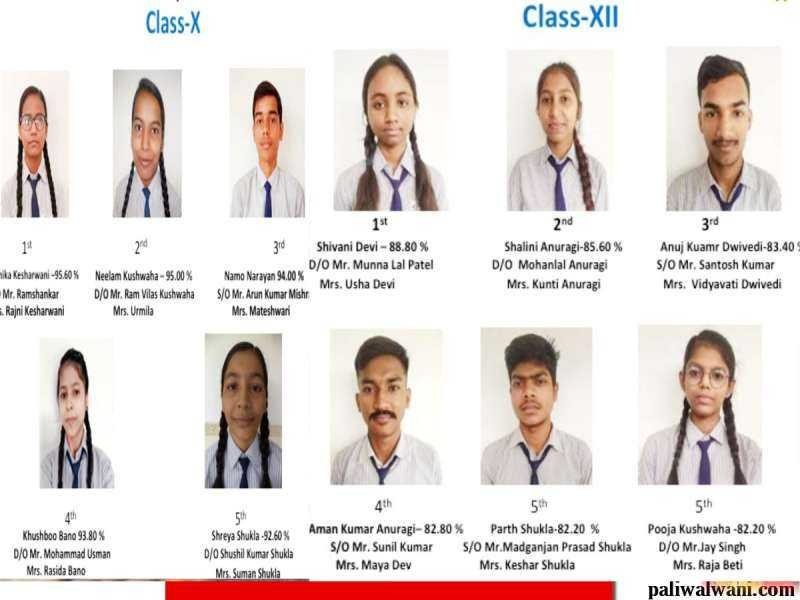 ● पूजा कुशवाहा पुत्री श्री जय सिंह 82.20कक्षा में संयुक्त पञ्चम स्थान प्राप्त कर सभी छात्रों ने विद्यालय का नाम रोशन किया।
