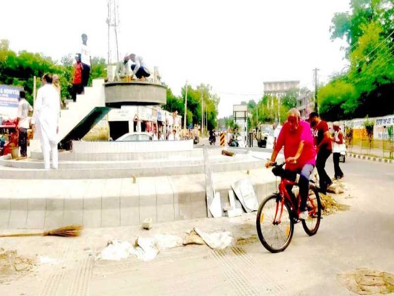 फोटो : निर्माणाधीश चौक का जायजा लेने पहुंचे मेयर विमल ठठई.