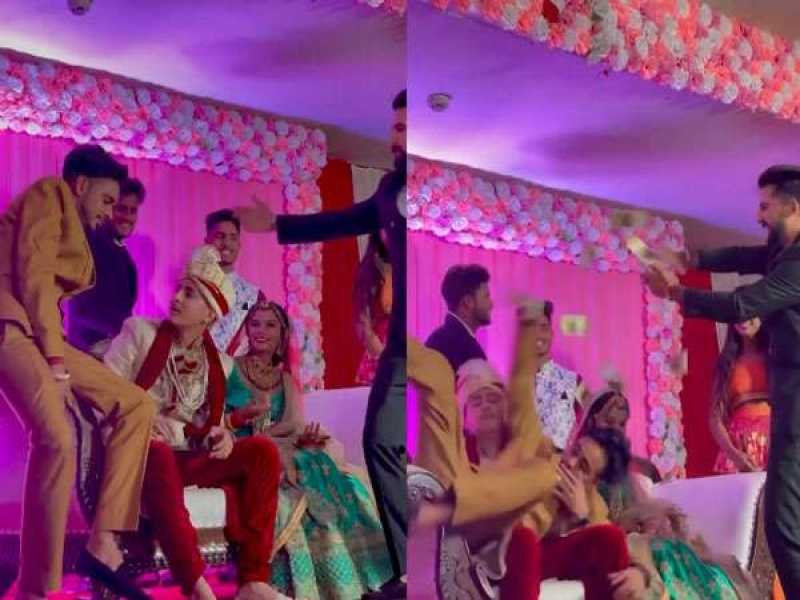 भारतीय शादियां कमाल ही नहीं, बल्कि लोगों के बीच चर्चा का विषय भी बन जाती हैं. दरअसल, कभी-कभार शादियों में रिश्तेदार और दोस्त ऐसा करानामा कर देते हैं कि दूल्हा और दुल्हन दोनों टेंशन में आ जाते हैं, और मामला सोशल मीडिया पर वायरल हो जाता है. इंस्टाग्राम पर ऐसा ही वीडियो खूब देखा जा रहा है।. दूल्हे के दोस्त का लड़खड़ता अंदाज देख बहुत से लोगों की हंसी ही नहीं रूक रही. दरअसल, दूल्हे के दो दोस्त स्टेज पर नोट उड़ा रहे थे कि तभी एक अपना संतुलन खो देता है और दूल्हे पर गिर पड़ता है. इसके बाद माहौल ही नहीं, दूल्हे के जज्बात भी बदल जाते हैं, और वो फ्रेंड को स्टेज से जाने का बोल देता है! इस वायरल वीडियो में आप देख सकते हैं कि दूल्हे के दो दोस्त स्टेज पर नोट उड़ा रहे हैं. इस बीच अचानक एक दोस्त का संतुलन बिगड़ जाता है, और वह दूल्हे पर गिर पड़ता है. दुल्हन शख्स को गिरता देख खुद को साइड कर लेती है. दोस्त की ये हरकत देख दूल्हे को गुस्सा आ जाता है. हालांकि, वो अपने यारों को कुछ नहीं कहता. बस स्टेज से जाने का इशारा करता है. हालांकि, बंदा तुरंत दूल्हे से माफी मांगते हुए उसके सिंहासन की एक तरफ बैठ जाता है.