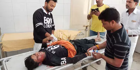 राजसमंद। घायल युवक का जिला अस्पताला में उपचार करते चिकित्सक। फोटो-सुरेश भाट