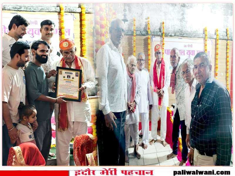 समाज के वरिष्ठ जनों द्वारा मेवाड़ी पगड़ी तथा युवा मंडल सदस्यों द्वारा अभिनंदन पत्र देकर श्री बालकृष्ण जी पालीवाल को धोईंदा समाज रत्न से सम्मानित किया गया.