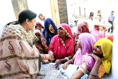 फोटो राजसमंद। जिला मुख्यालय के समीपवर्ती भाणा ग्राम पंचायत में बुथ सम्पर्क के दौरान ग्रामीणों से रूबरू होती भाजपा प्रत्याशी माहेश्वरी।
